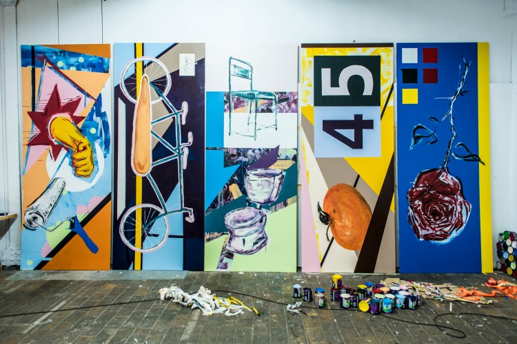 Collab Tyrell Kuipers – Vijf Nachten, Vijf Schilderijen – 5x 305×122 – acrylic, lacquer on panel – 2017 – Fontys Hogeschool van de Kunsten